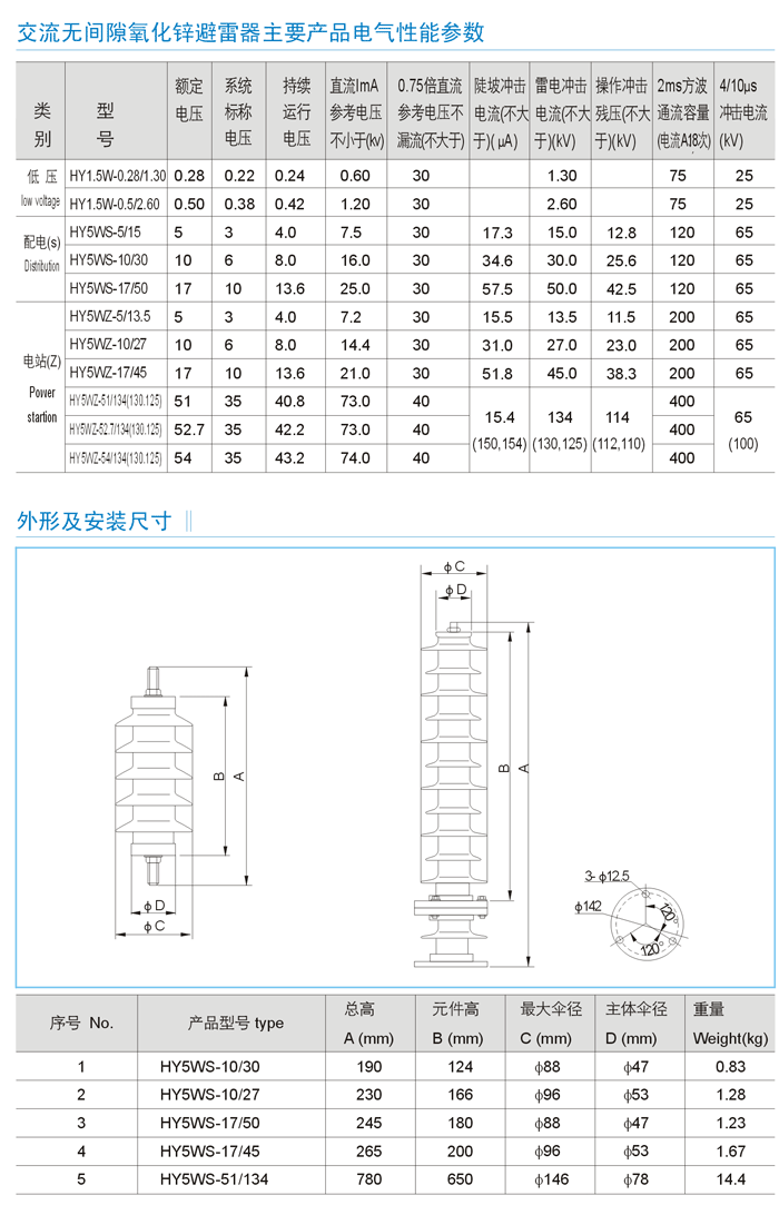 0.22~110kV系統(tǒng)用瓷外套和復(fù)合外套無(wú)間隙氧化鋅避雷器間隙氧化鋅避雷器